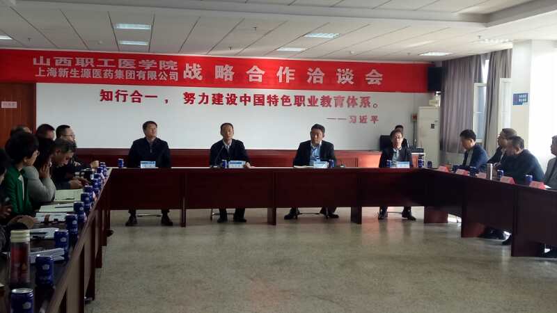 2017年10月22日,山西职工医学院与上海新生源医药集团有限公司在新校区行政教学楼12层大会议室举行了战略合作洽谈会。上海新生源医药集团有限公司总经理任军、副总经理荫俊、主营业务委员会副主任倪晶以及浙江亚太药业山西负责人王斌、山西省卫生计生委医政医管处主任科员冀晓鹏、学院党委书记王卫东、院长张波和学院领导班子出席会议,各系部、相关职能处室主要负责人参加会议。会议由党委书记王卫东主持。