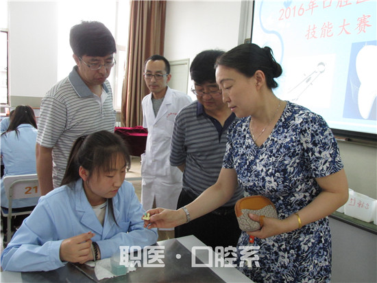 2016年6月23日,口腔系举办2016年口腔医学技术技能大赛,比赛在全体老师的努力和校企合作企业的大力支持下取得了圆满成功,比赛期间屈玉明副院长、教务处李夏处长亲临赛场进行了指导。